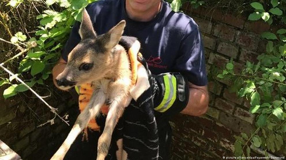 В июне 2017 года две молоденькие косули в Дортмунде упали в шахту бывшей теплоэлектростанции. Им повезло — их рев услышали случайные прохожие, которые и позвонили спасателям.