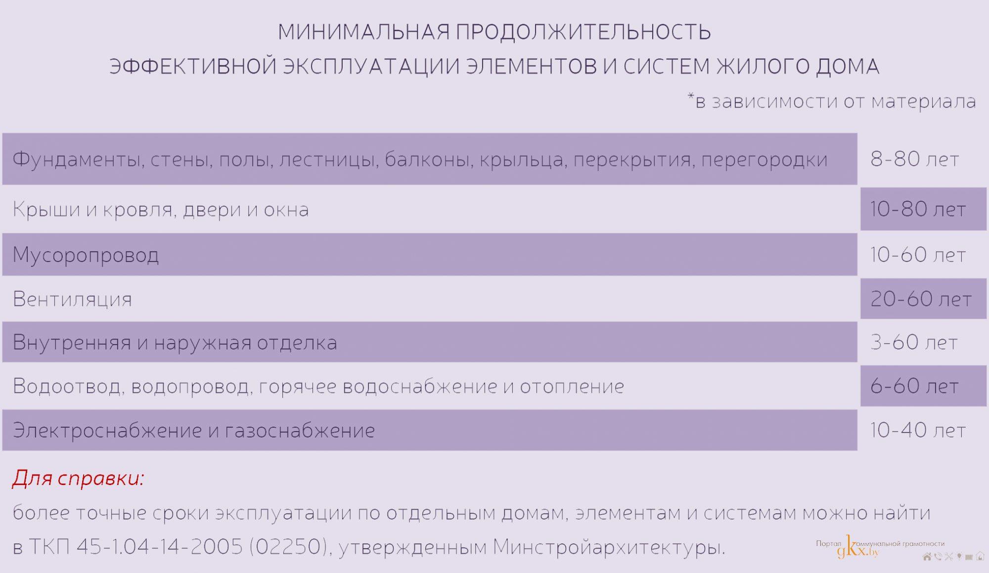 – срок службы дома, его конструктивных элементов и инженерных систем;