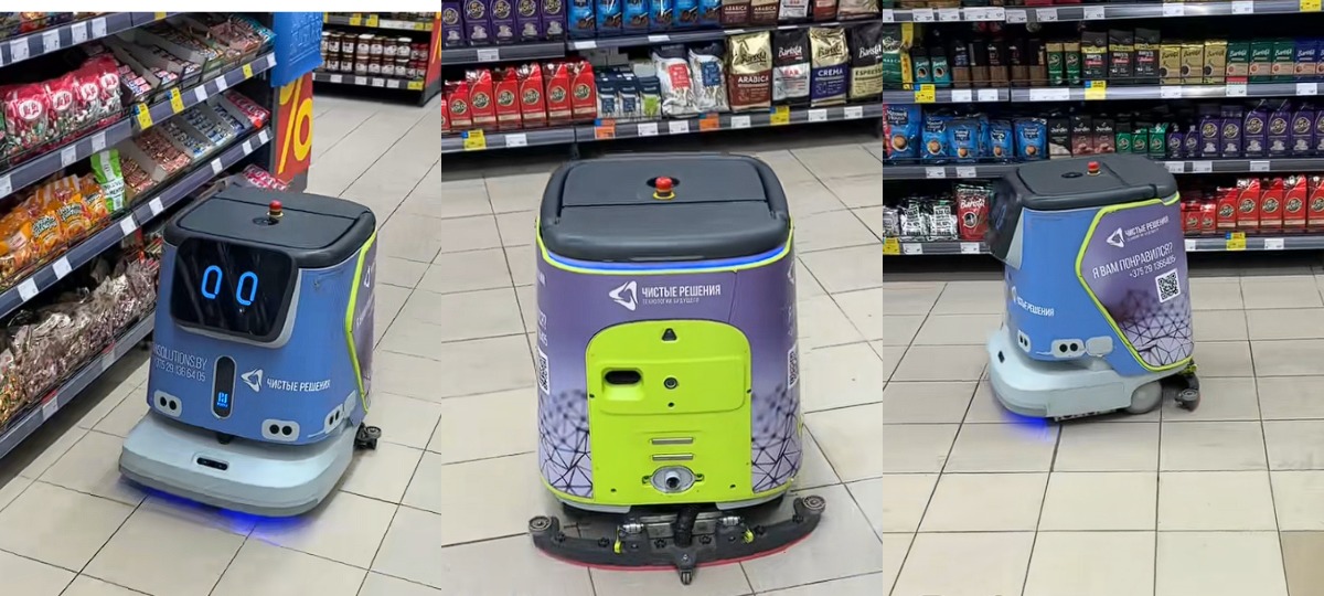 На відэа ў TikTok відаць, што цяпер падлогі крамы мые спецыяльны робат-мыйшчык. Ён быў набыты ў ТАА «Чыстыя рашэнні», як вынікае з апісання на ягонай абалонцы.